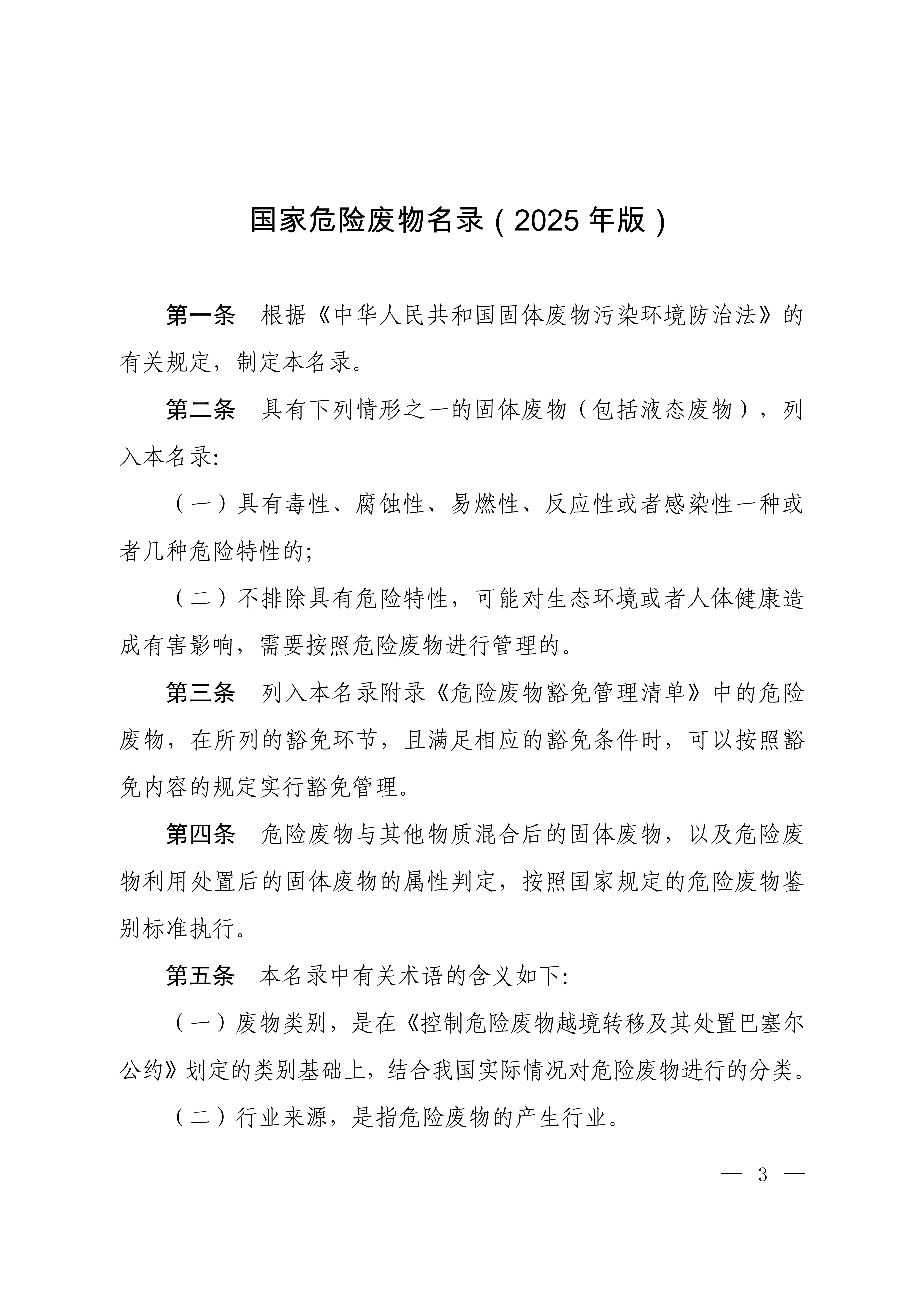 《國家危險廢物名錄(2025年版)》已于2024年11月8日由生態環境部2024年第5次部務會議審議通過,并經國家發展改革委、公安部、交通運輸部、國家衛生健康委同意,現予公布,自2025年1月1日起施行。